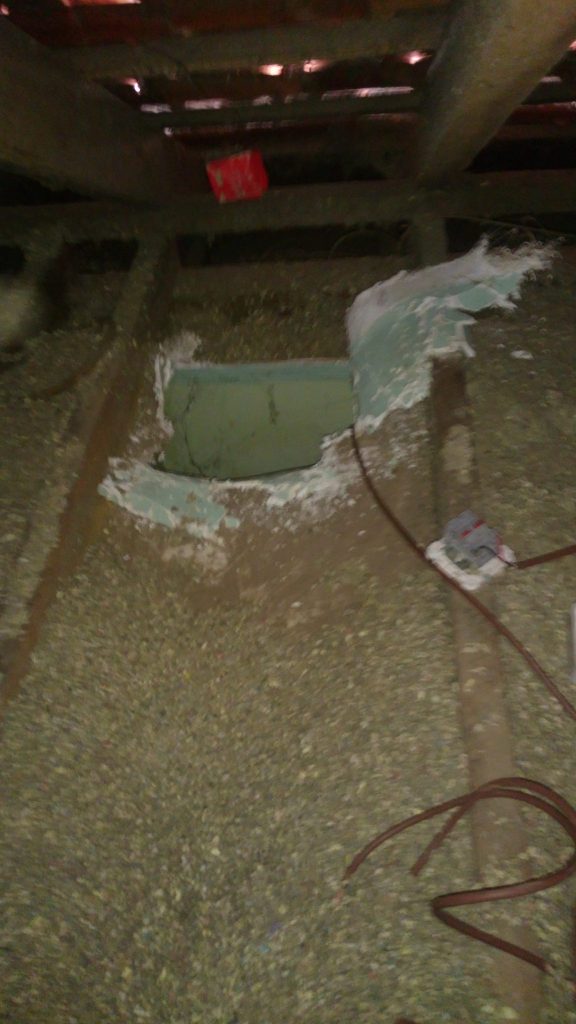 The old system was in a poor state & actually getting to the original mounting points to replace them was a dirty job – think of many years of accumulated rat, possum & unknown droppings & a LOT of dust and dirt.